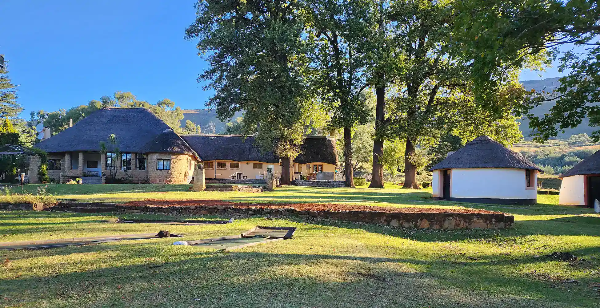 The thatched cottages were built by Frans Vetter in about 1948. The lodge had several owners until Ian and Cherri Worral took it over in 1998. Ian was involved in the renovation of the main building when they arrived. Ian was well known for taking horse riding excursions into Lesotho. They sold the lodge to Bradley and Sarah-Jane Hudson, the current owners, in February 2023.